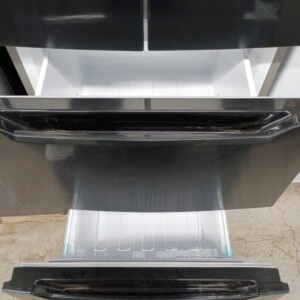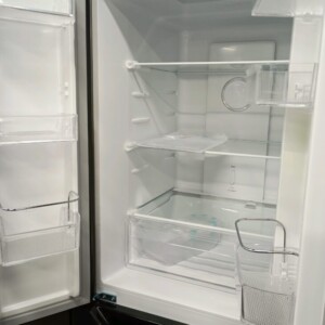ご依頼いただいた冷蔵庫は外装に軽微な擦れや小キズが見受けられる状態でしたが、目立つへこみや破損はありませんでした。庫内は清掃されており、棚や引き出しも揃っている状態で、衛生面・機能面ともに問題なく使用できるコンディションでした。冷却動作も確認済みで、冷蔵・冷凍ともにしっかり冷えることを確認しております。