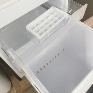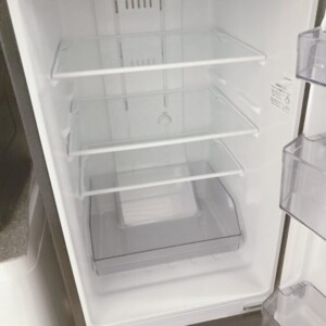 ご依頼品は外装に軽度の擦れや使用に伴う小キズが見られる状態でしたが、大きなへこみや破損はありませんでした。庫内は清掃済みで、棚やケース、製氷トレーなどの付属品も揃っており、日常使用に問題のないコンディションでした。動作確認も実施し、冷却機能は正常であることを確認しております。