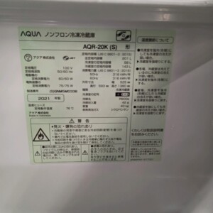 東京都東村山市にてAQUA AQR-20K 冷蔵庫 2021年製 軽微な傷ありのため適正価格で買取しました
