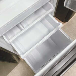 お引き取りした冷蔵庫は、外装に目立つ傷やへこみはなく、非常にきれいな状態でした。庫内も清潔に保たれており、棚板・ドアポケット・野菜ケース・冷凍室の引き出しなどの付属パーツもすべて揃っていました。動作確認でも冷却・冷凍ともに問題なく、しっかりとした冷却性能を維持していることを確認しております。