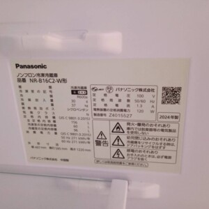 今回は大田区田園調布にお住まいの50代男性(自営業・単身・持ち家一戸建て)より、パナソニック ノンフロン冷凍冷蔵庫 NR-B16C2-W(2024年製)を出張買取にてご依頼いただきました。