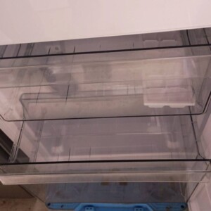 お引き取りした冷蔵庫は2024年製と比較的新しいモデルで、外観は目立つキズやへこみもなく、全体的に非常にきれいな状態でした。庫内についても棚板やドアポケットの割れや欠けもなく、使用感はあるものの清潔に保たれている状態でした。動作確認では冷却機能も問題なく、冷蔵・冷凍ともにしっかりと冷えることを確認しております。