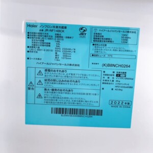 今回は葛飾区にお住まいの30代女性(主婦・親子世帯・賃貸アパート)のお客様より、ハイアール JR-NF148CK(2022年製)2ドア冷凍冷蔵庫を出張買取にてご依頼いただきました。