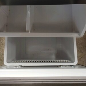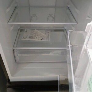 お引き取りした冷蔵庫は、外観に軽微な擦り傷や小さな汚れが見られる状態でしたが、大きなへこみや破損はありませんでした。庫内については棚板や野菜ケースに破損はなく、比較的きれいな状態を維持しており、通常使用に問題のないコンディションです。動作確認でも冷却性能は良好で、冷蔵・冷凍ともにしっかり機能していました。