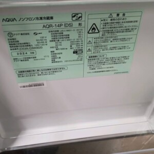 今回は品川区にお住まいの30代男性(会社員・単身・賃貸マンション)のお客様より、AQUA AQR-14P(2024年製)2ドア冷凍冷蔵庫を出張買取にてご依頼いただきました。