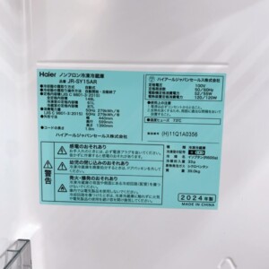 今回は中野区にお住まいの30代男性(会社員・単身・賃貸マンション)のお客様より、ハイアール JR-SY15AR(2024年製)2ドア冷凍冷蔵庫を出張買取にてご依頼いただきました。