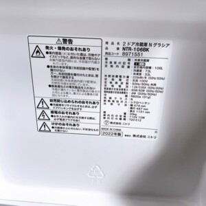 東京都日野市でニトリ NTR-106BK 冷蔵庫 2022年製 使用感ありのため適正価格で買取しました