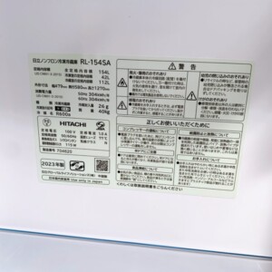 今回は府中市にお住まいの30代女性(会社員・単身・賃貸マンション)より、日立 RL-154SA(2023年製)を出張買取にてご依頼いただきました。