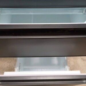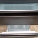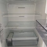 本体外観には使用に伴う軽微な擦り傷や手垢跡が見受けられましたが、大きなへこみや破損はなく、全体的に良好な状態でした。庫内は棚やケース類が揃っており、食品汚れやニオイの付着も少なく清潔な状態が保たれていました。冷却機能や庫内灯などの動作確認も問題なく、日常使用に支障のないコンディションでした。