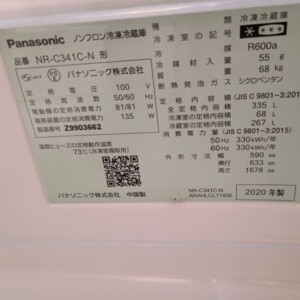 東京都千代田区でPanasonic NR-C341C-N 冷蔵庫 2020年製 使用感ありのため適正価格で査定しました