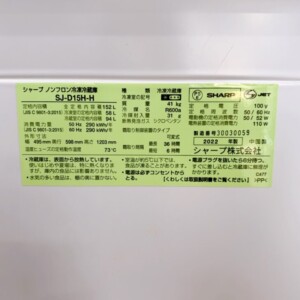 今回は世田谷区経堂にお住まいの20代男性(会社員・単身・賃貸アパート)より、SHARP ノンフロン冷凍冷蔵庫 SJ-D15H-H(2022年製)を出張買取にてご依頼いただきました。