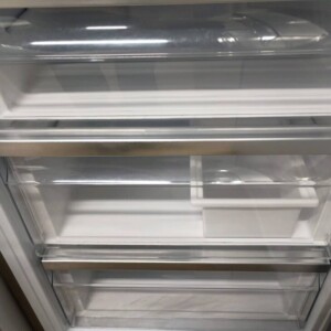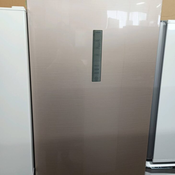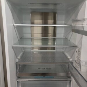 外観は落ち着いたカラーでインテリアになじみやすいモデルですが、日常使用に伴う細かな擦り傷や軽微な使用感が見受けられました。庫内は棚や引き出しなどのパーツも揃っており、大きな汚れや破損はなく清掃済みの状態でした。冷却機能や操作パネルも正常に作動し、家庭用として問題なく使用できるコンディションです。