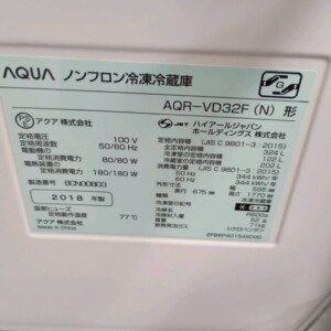 今回は清瀬市にお住まいの40代女性(主婦・夫婦世帯・持ち家マンション)より、AQUA ノンフロン冷凍冷蔵庫 AQR-VD32F(2018年製)を出張買取にてご依頼いただきました。