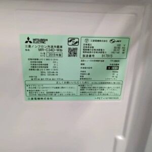 東京都東久留米市で三菱 MR-C34D-W 冷蔵庫 使用感ありのため適正価格で査定しました
