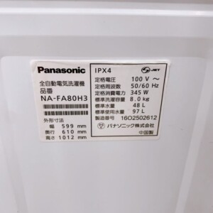 ご依頼いただいたのはPanasonic製の縦型洗濯機 NA-FA80H3で、8.0kgの洗濯容量を備えた家庭向けモデルです。外観には日常使用による細かなスレや軽微な汚れが見られましたが、大きな破損やへこみはありませんでした。