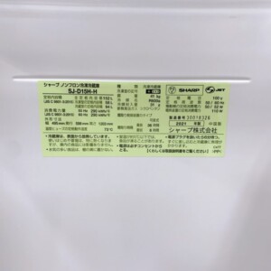 今回は中央区にお住まいの20代女性(会社員・単身・賃貸マンション)より、SHARP SJ-D15H-H(2021年製)ノンフロン冷凍冷蔵庫の出張買取をご依頼いただきました。