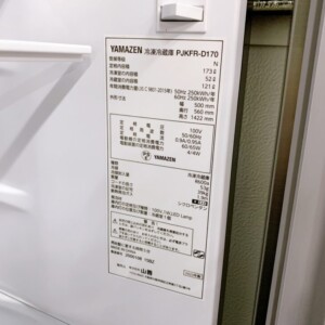 今回は港区麻布十番にお住まいの40代男性(会社員・単身・賃貸マンション)より、YAMAZEN PJKFR-D170(2023年製)ノンフロン冷凍冷蔵庫の出張買取をご依頼いただきました。