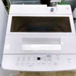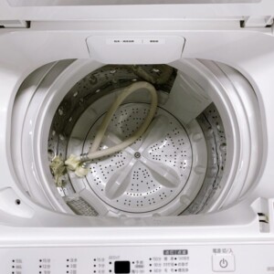 拝見した洗濯機は、外装に目立つ傷やへこみはなく非常にきれいな状態でした。操作パネルの文字もはっきりしており、使用頻度が少ないことがうかがえます。洗濯槽内も汚れやカビの付着は見られず、清潔に保たれている良好なコンディションでした。給水ホースなどの付属も揃っており、動作確認でも問題なく使用できる状態でした。
