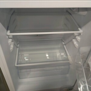 外装には目立つ傷やへこみは見受けられず、全体的に非常にきれいな状態でした。庫内も清潔に保たれており、棚や引き出しなどの付属パーツも揃っている状態です。冷却機能も問題なく、動作は良好で安心して再利用できるコンディションでした。