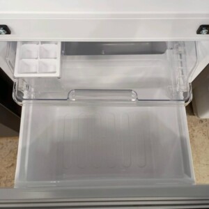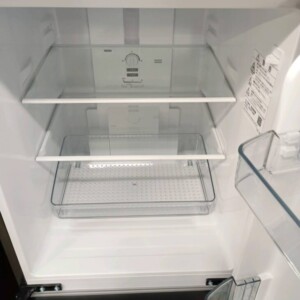 ご依頼いただいた冷蔵庫は、外装に目立つキズやへこみがほとんど見られないきれいな状態でした。庫内も棚板や引き出しに割れや欠けはなく、汚れやニオイも少なく清潔感のあるコンディションでした。製氷トレーや収納ケースも揃っており、冷却動作も問題なく確認できています。全体的に使用期間が短いことがうかがえる状態でした。