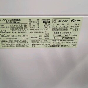 今回は中央区にお住まいの20代女性(会社員・単身・賃貸マンション)のお客様より、SHARP 2ドア冷凍冷蔵庫 SJ-D15K-H(2024年製)を出張買取にてご依頼いただきました。