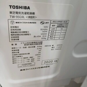 東京都武蔵野市へTOSHIBA ドラム式洗濯乾燥機 TW-95G9L 2020年製 使用感ありのため適正価格で査定しました