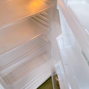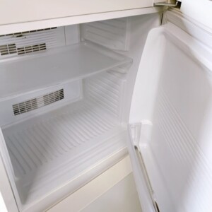 お預かりした冷蔵庫は、外装に経年使用による擦れや軽微な汚れが見られる状態でした。ドア部分にも細かなキズがあり、長期間使用されていた様子がうかがえます。庫内については棚板やケースの割れはなく、軽い汚れはあるものの使用に支障のない状態でした。冷却動作も問題なく確認でき、基本機能は維持されていました。