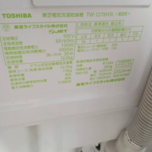 東京都狛江市へTOSHIBA ドラム式洗濯乾燥機 TW-127XH3L 2024年製 美品のため適正価格で査定しました