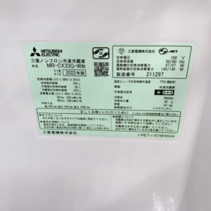 今回は東京都渋谷区にお住まいの50代男性自営業・単身世帯・持ち家(一戸建て)のお客様より、三菱電機 ノンフロン冷凍冷蔵庫 MR-CX33G-W(2022年製)を出張買取にてご依頼いただきました。