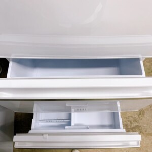 お品物は外観に大きなへこみや目立つキズは見られず、全体的に落ち着いた使用感の状態でした。冷蔵室内の棚やドアポケット、チルドケース、冷凍室の引き出しなども揃っており、破損や欠品は確認されませんでした。庫内は食材のにおい移りや強い汚れが少なく清潔感のある状態で、日常的に丁寧に使用されていたことがうかがえます。動作面でも冷却機能に問題はなく、再販を見据えても評価しやすい状態でした。