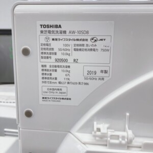 東京都八王子市へTOSHIBA 洗濯機 AW-10SD8 2019年製 使用感ありのため適正価格で査定しました