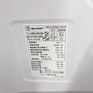 今回は東京都国分寺市にお住まいのお客様より、SHARP ドラム式洗濯乾燥機 ES-H10G-WR(2023年製)を出張買取にてご依頼いただきました。夫婦世帯でご使用されていたお品物です。