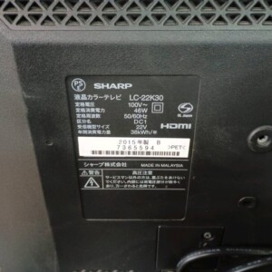 今回は港区にお住まいの30代男性(会社員・単身・賃貸マンション)より、SHARP AQUOS LC-22K30(2015年製)を出張買取にてご依頼いただきました。