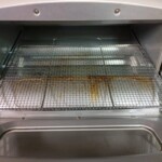 お預かりしたトースターは、外装に目立つ傷や大きなへこみは見られないものの、庫内の焼き網や底面に焦げ付きや使用感が確認される状態でした。特にヒーター付近やトレイ部分に、パンくずや焼き跡が残っており、日常的に使用されていたことが分かります。
