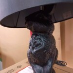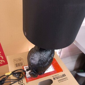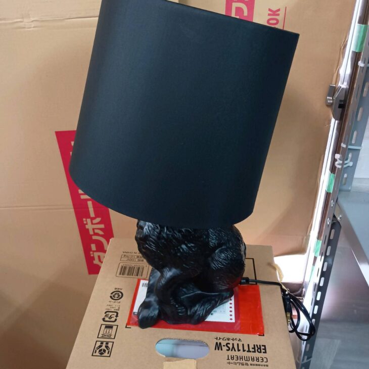 お預かりしたランプは、シェード部分に軽微なスレや使用に伴うくすみが見受けられる状態でした。本体のラビットモチーフ部分にも細かな擦れはありますが、大きな傷や破損はなく全体的に良好な外観を維持しています。電源コードやスイッチの状態も問題なく、点灯確認も正常でした。
