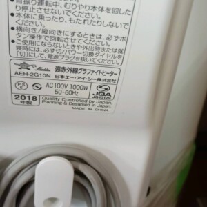 今回は文京区にお住まいの40代女性(主婦・夫婦世帯・持ち家マンション)より、アラジン 遠赤外線グラファイトヒーター AEH-2G10N(2018年製)を出張買取にてご依頼いただきました。