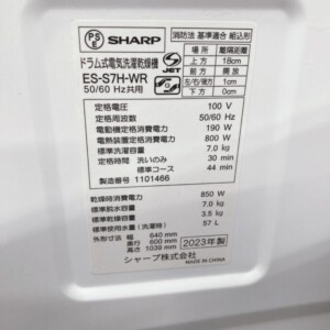東京都港区南麻布へSHARP ドラム式洗濯乾燥機 ES-S7H-WR やや使用感ありのため適正価格で査定しました