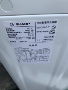 SHARP(シャープ)6.0㎏ 全自動洗濯機 ES-GE6D-T 2020年製