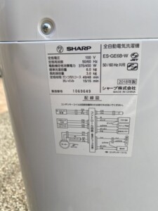 SHARP(シャープ)6.0㎏ 全自動電気洗濯機 ES-GE6B-W 2018年製