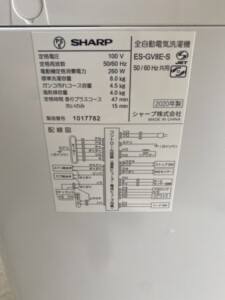 SHARP(シャープ)8.0㎏ 全自動電気洗濯機 ES-GV8E-S 2020年製