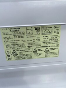 SHARP(シャープ)137L 2ドア冷蔵庫 SJ-D14E-N 2019年製
