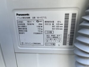 Panasonic(パナソニック)7.0㎏ ドラム式洗濯乾燥機 NA-VG710L 2017年製
