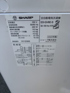 SHARP(シャープ)8.0㎏ 全自動電気洗濯機 ES-GV8E-S 2020年製
