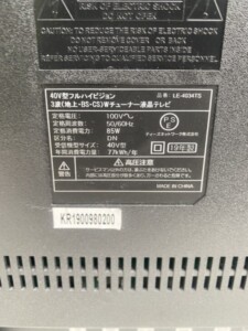 ティーズネットワーク 40型液晶テレビ LE-4034TS 2019年製