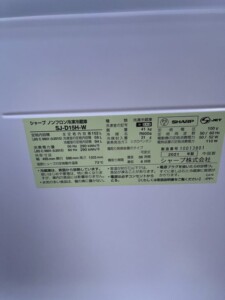 SHARP(シャープ)152L 2ドア冷蔵庫 SJ-D15H-W 2021年製