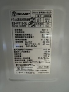 SHARP(シャープ)11.0㎏ ドラム式洗濯乾燥機 ES-W113-SL 2021年製