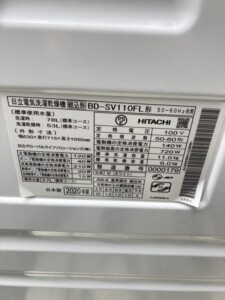 HITACHI(日立)11.0㎏ ドラム式洗濯乾燥機 BD-SV110FL 2020年製