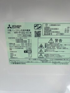 また、MR-P15G-H1は2022年製ということで、