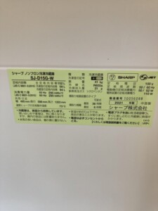 SHARP(シャープ)2ドア冷蔵庫 SJ-D15G-W 2021年製