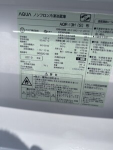 AQUA(アクア)126L 2ドア冷蔵庫 AQR-13H(S) 2019年製こちらの商品をお申込み頂き、